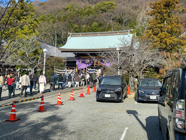 This shrine is located in the center of Matsuyama City. This shrine is usually visited by many worshippers. During the New Year's first shrine visit of the year, even more people visit, forming long queues.
